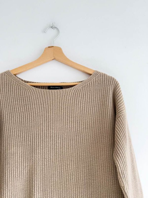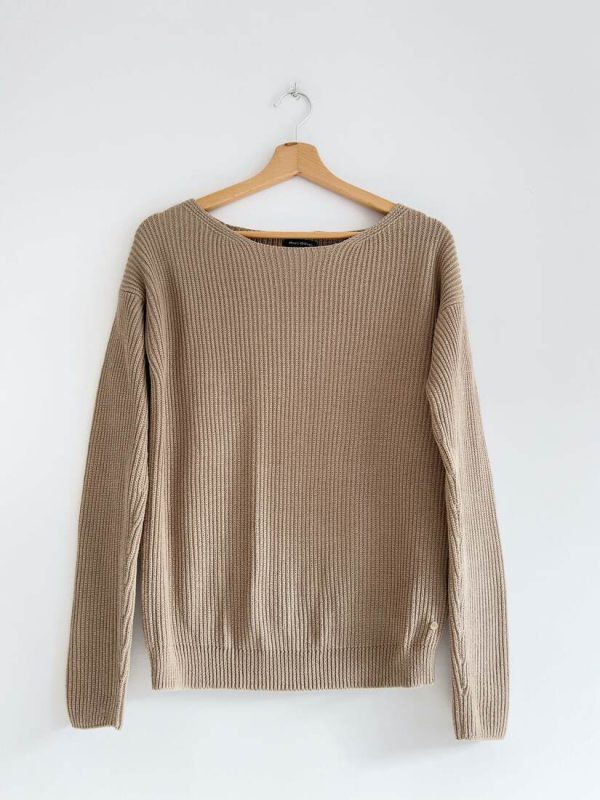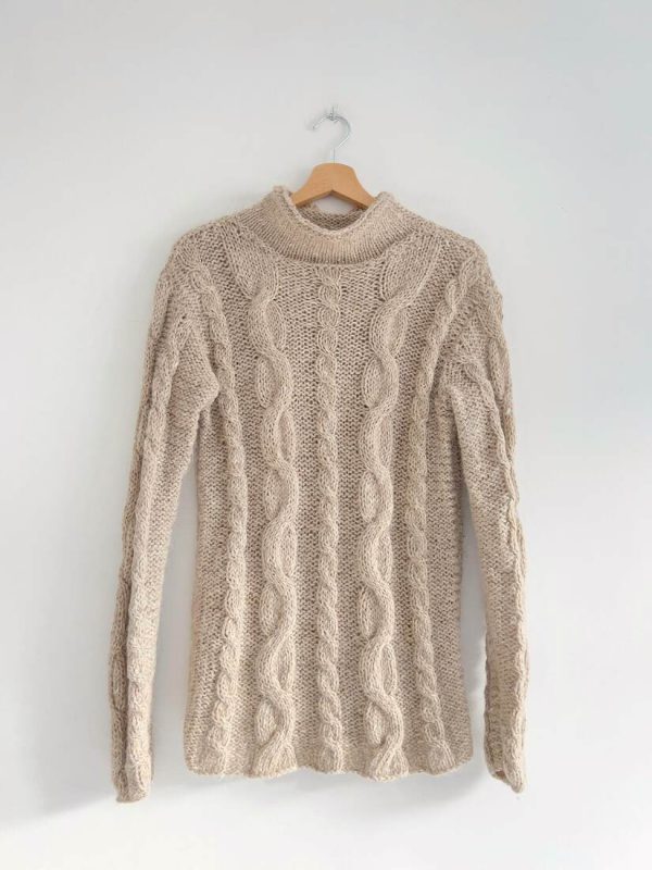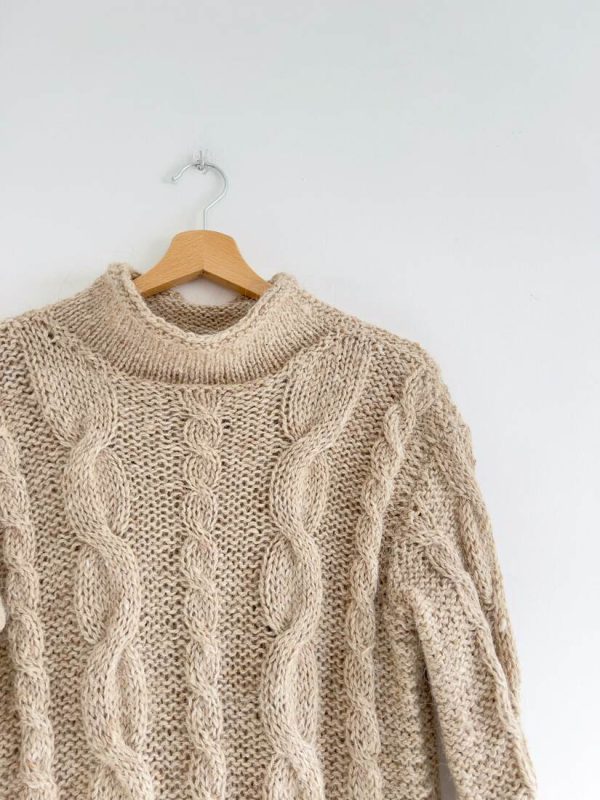 90,00 złRęcznie robiony sweter o grubym splocie. Brak metki ze składem, prawdopodobnie mieszanka wełny i moheru, sweter jest puszysty. Dłuższy fason. Brak metki z rozmiarem, proszę sugerować się wymiarami.