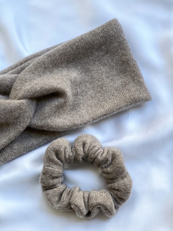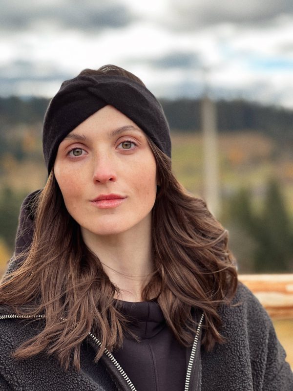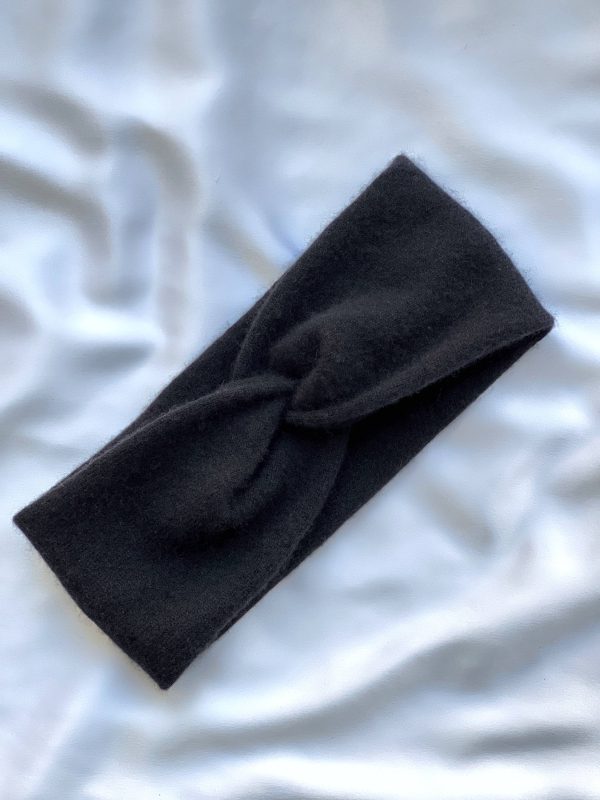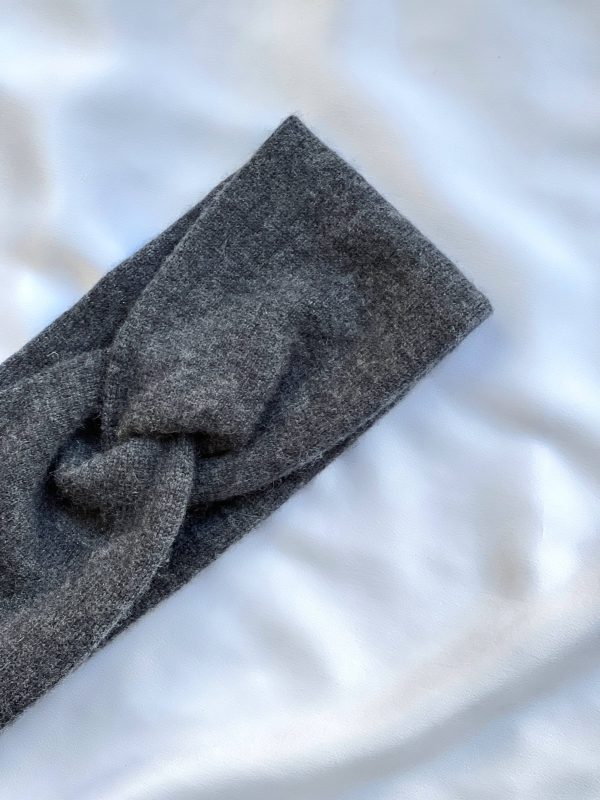 Ciepła opaska na głowę w kolorze grafitowym. W 100% szyta z kaszmiru z odzysku