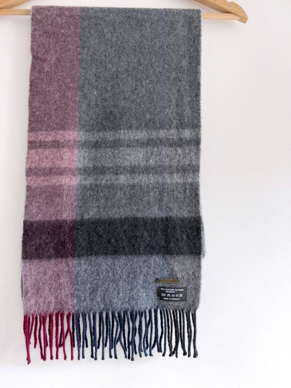 Szalik vintage wyprodukowany w Niemczech. 100% kaszmir. Ma jedno malutkie cerowanie, absolutnie nie widoczne w noszeniu. Poza tym bez wad.