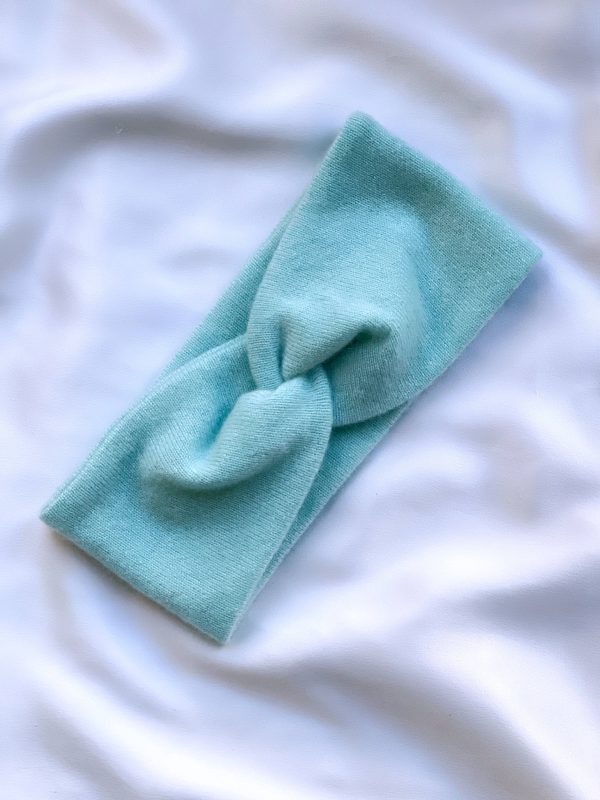 Ciepła opaska na głowę w 100% szyta z kaszmiru z odzysku. Kolor to delikatny pastelowy turkus, rozmiar XS, będzie dobra dla nastolatka/dziecka.