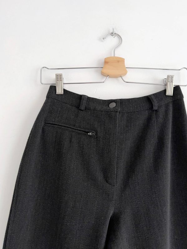 220,00 zł190,00 złWełniane spodnie luksusowej włoskiej marki Max Mara, linia WEEKEND. Bardziej dopasowany fason, z wysokim stanem. Rozmiar z metki 38, polecam na S lub mniejsze M. Bez wad.