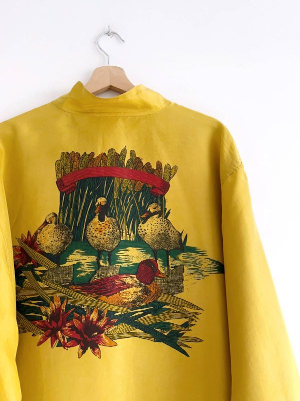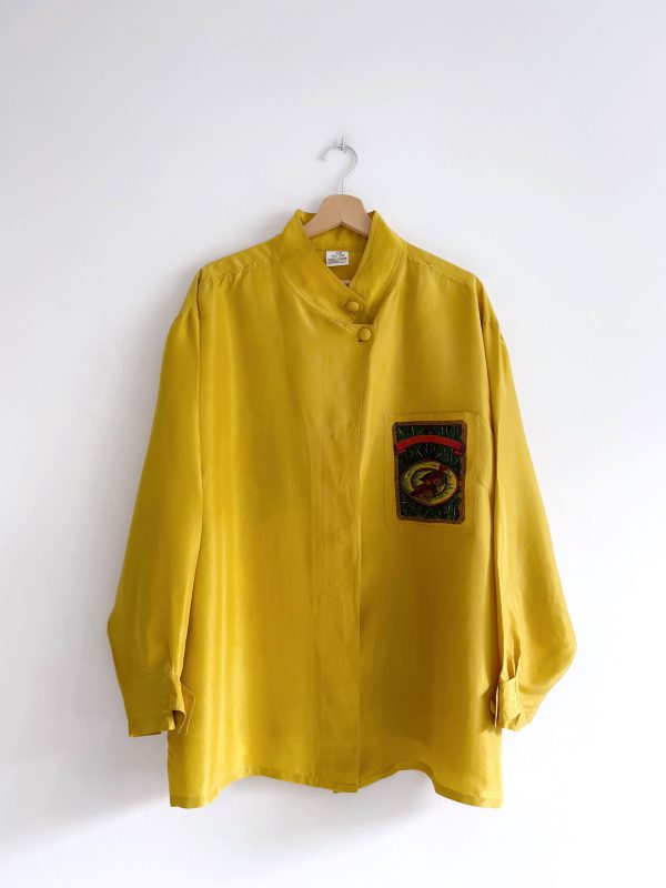 120,00 złUnikatowa koszula vintage w 100% wykonana z jedwabiu. Rozmiar z metki 48/50, będzie pasować na XL, lub na mniejsze jako oversize. Koszula ma małe wgięcia materiału, pokazane na zdjęciu. Nie są widoczne w noszeniu.