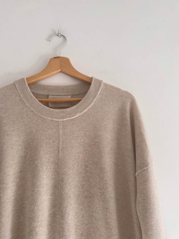 Sweter o obszernym kroju, niemiecka marka Hugenberg. Wykonany z wełny z dodatkiem kaszmiru. Rozmiar z metki M, jednak jest bardzo luźny, więc polecam jako one size. Bardzo dobry stan. Skład: 80% wełna, 20% kaszmir