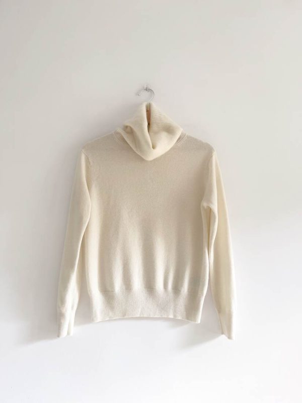 Kaszmirowy sweter marki Uniqlo. Prosty fason z dużym golfem. Rozmiar z metki S, standartowa rozmiarówka. Będzie pasować również na XS. Bez wad.