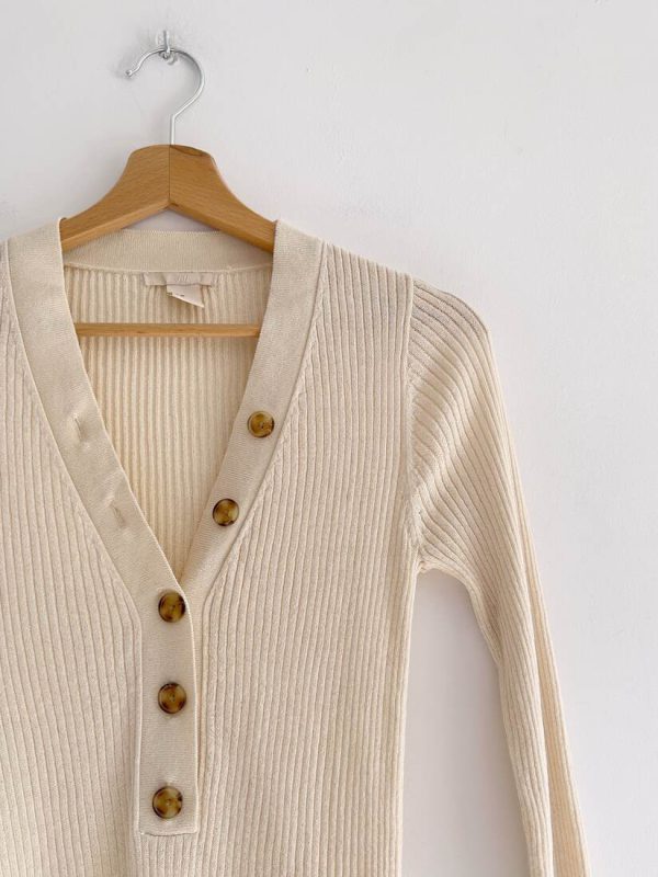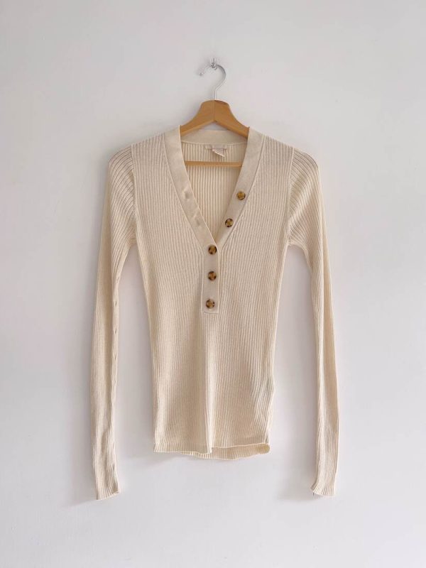 Dopasowana bluzka w prążki, wykonana z wiskozy z małym dodatkim poliamidu. Polecam na XS-S, bez wad. Skład: 87% wiskoza, 13% poliamid