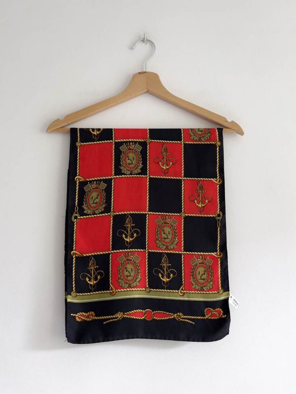 Jedwabny szalik vintage, ręcznie rolowany. Bez wad. Wymiary: 138*33 cm