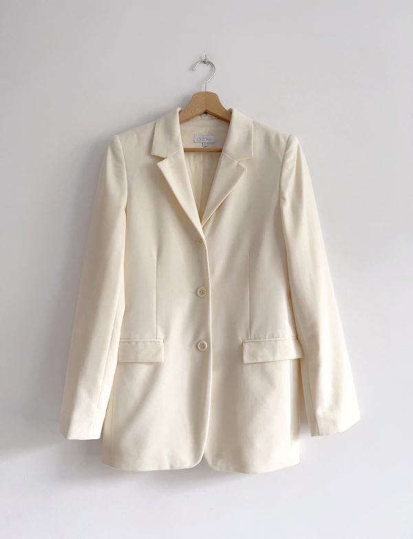 70,00 zł56,00 złMinimalistyczna marynarka vintage. Wykonana z tkaniny z dodatkiem wełny. Malutkie przetarcie materiału jest pokazane na zdjęciu, nie jest widoczne w noszeniu. Poza tym bez wad. Rozmiar z metki 38.