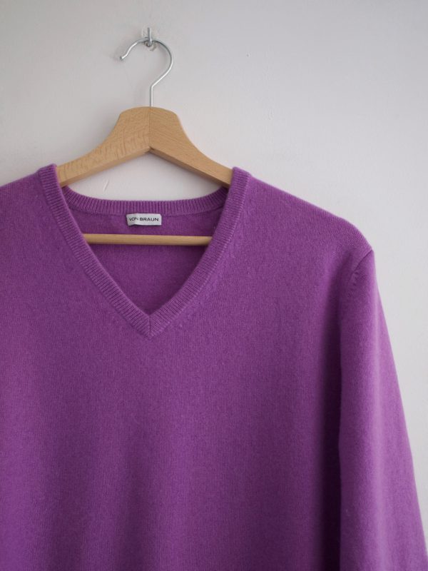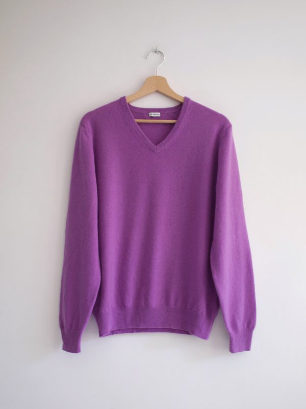 130,00 złSweter vintage w 100% wykonany z kaszmiru. Ma malutką zacerowaną dziureczkę, pokazana na zdjęciach. Jest absolutnie nie widoczna w noszeniu. Poza tym brak wad, sweter jest puszysty i bardzo miły w dotyku.
