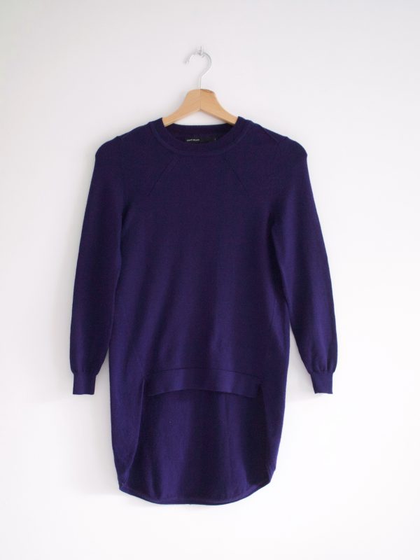 70,00 zł59,00 złCienki asymetryczny sweter marki Karen Millen. Wykonany z tkaniny z dodatkiem wełny i lyocellu. Kolor jest ciężki do pokazania, pomiędzy granatem a fioletem. Polecam na XS, bez wad.