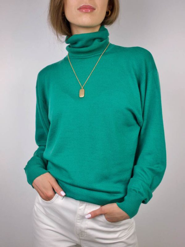 150,00 złGolf vintage, wykonany z bardzo miłej w dotyku dzianiny jedwabno-kaszmirowej. Brak metki z rozmiarem, zależnie od preferowanego dopasowania polecam na S-M. Bardzo dobry stan.