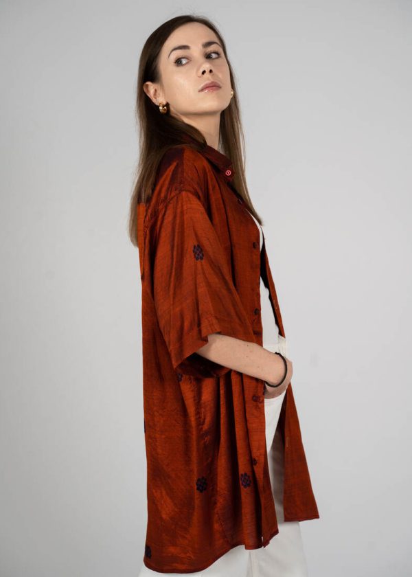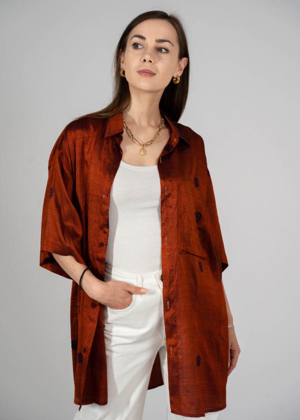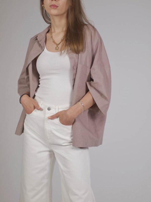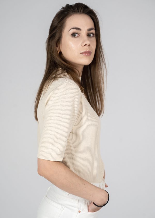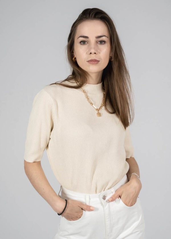 Modelka ma 165 cm wzrostu i nosi rozmiar XS-S.Szerokość w ramionach 39 cm