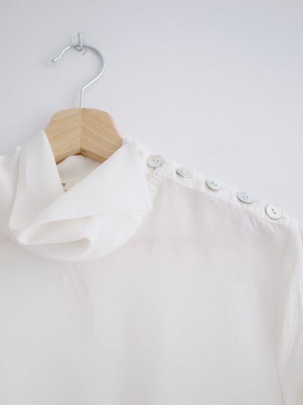 130,00 złJedwabna bluzka ekskluzywnej marki Levete Room. Kołnierz bluzeczki był zapinany na guziki w złotym kolorze, jednak były wytarte, więc zostały wymienione na guziki z masy perłowej. Na życzenia kupującej mogą być dołączone do paczki. Brak metki z rozmiarem, polecam na L, lub jako oversize. Bardzo dobry stan.