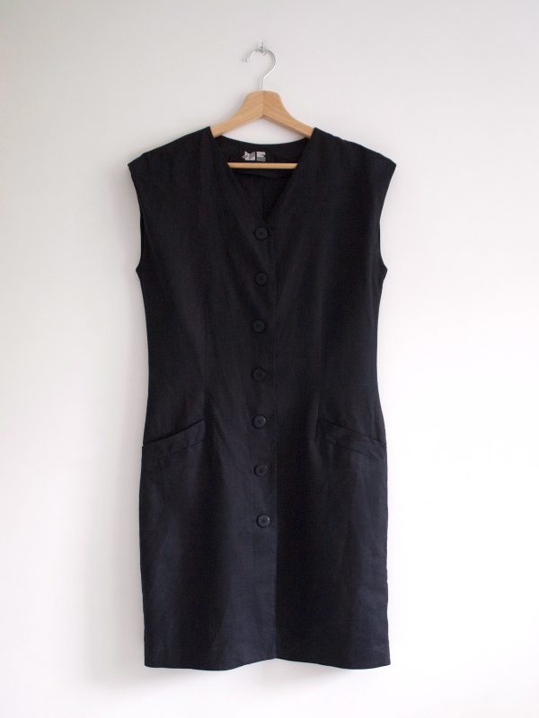 90,00 złUnikatowa sukienka/ kamizelka vintage, wykonana z tkaniny lniano-bawełnianej. Rozpinana po całości, z kieszeniami ( jeszcze zaszyte). Rozmiar z metki 36, bez wad.