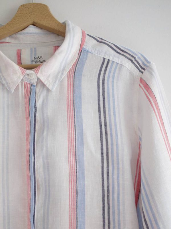 60,00 złKoszula w granatowym kolorze, holenderska marka 10 Feet. Wykonana z mieszanki jedwabiu i wiskozy. Na plecach ma delikatne rozluźnienie materiału, pokazane na zdjęciu. Nie jest bardzo widoczne w noszeniu. Rozmiar z metki M, będzie pasować również na S.