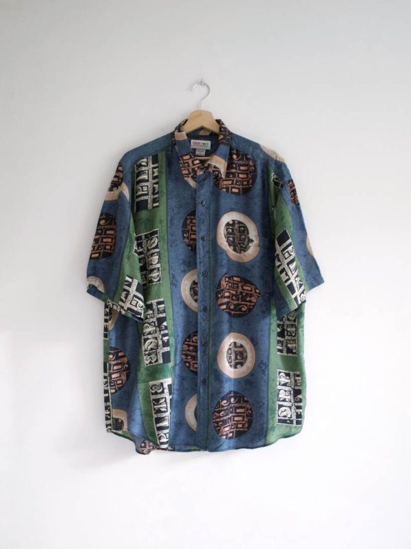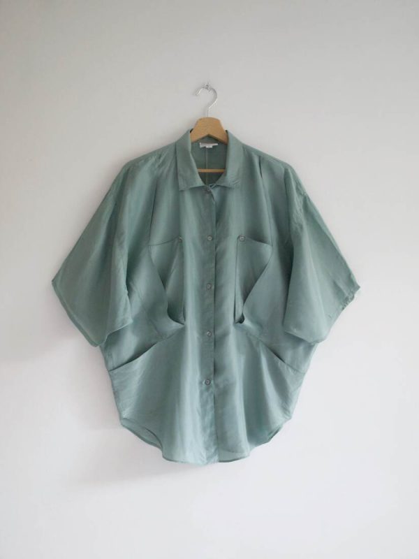 70,00 złJedwabna koszula vintage o ciekawym kroju. Rozmiar z metki S, jednak koszula jest bardzo luźna, więc polecam jako one size. W niektórych miejscach ma wady materiału, pokazane na zdjęciach, nie są widoczne w noszeniu.