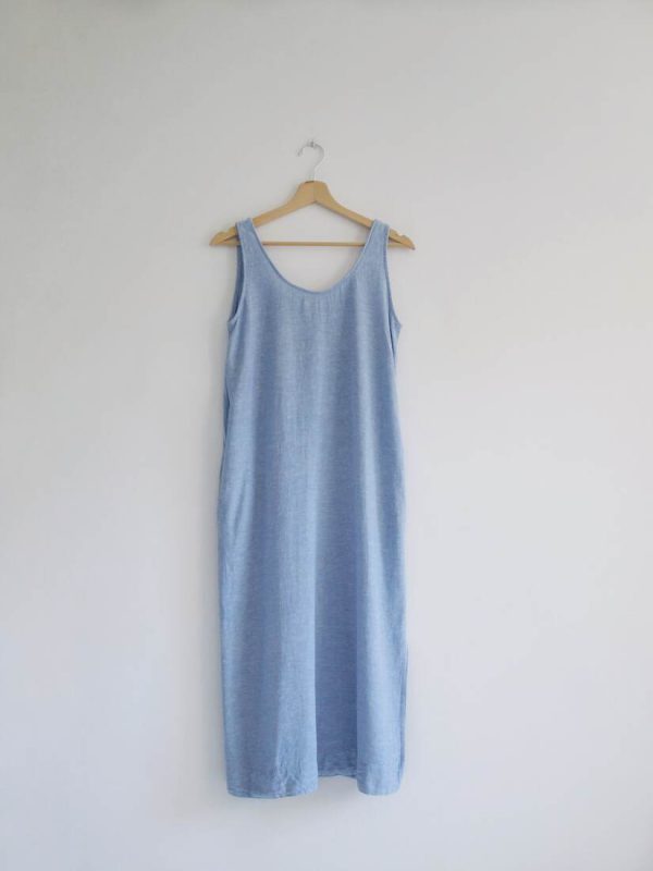 Sukienka wyprodukowana w Niemczech. Jest wykonana z elastycznej tkaniny z dużym udziałem lnu. Prosty fason z odkrytymi ramionami, z tyłu zapinana na suwak. Rozmiar z metki 38, bez wad. Skład: 70% len, 26% poliamid, 4% elastanSzerokość w ramionach 44 cm