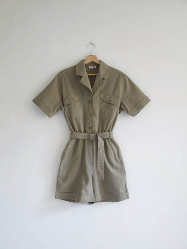 90,00 złKombinezon vintage w stylu safari, wykonany z tkaniny lniano-bawełnianej. W pasie gumka. Rozmiar z metki 38, moim zdaniem może być zbyt dopasowany, polecam na S, lub proszę sugerować się wymiarami. Nowy bez metki.