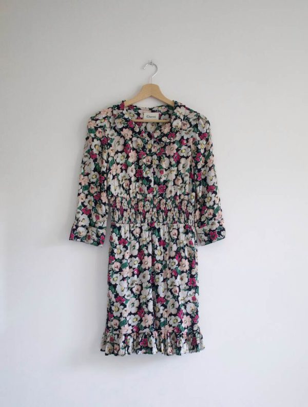 120,00 złSukienka marki GANNI w kwiatowe wzory. Rozpinany kołnierzyk, elastyczna w talii, podszewka w dolnej części. Rozmiar z metki S, polecam na XS-S. Bez wad.
