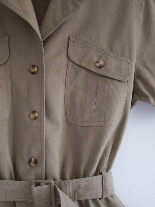 90,00 złKombinezon vintage w stylu safari, wykonany z tkaniny lniano-bawełnianej. W pasie gumka. Rozmiar z metki 38, moim zdaniem może być zbyt dopasowany, polecam na S, lub proszę sugerować się wymiarami. Nowy bez metki.