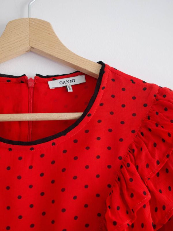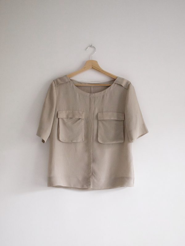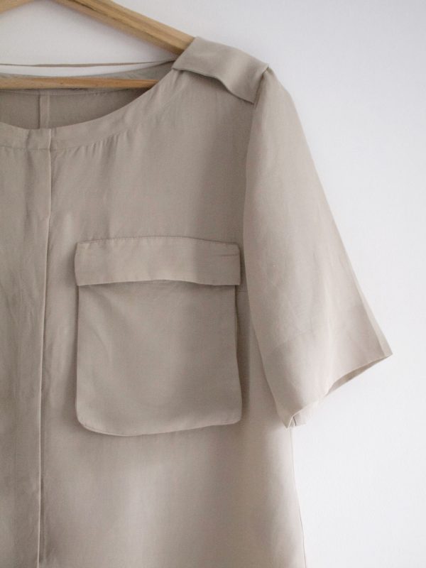 70,00 złBluzka ekskluzywnej duńskiej marki Castommade. Wykonana z cienkiego jedwabiu o ciekawej strukturze. Na kołnierzyku ma mało widoczne przebarwienie, nie jest widoczne w noszeniu. Rozmiar z metki 44, polecam jako oversize.