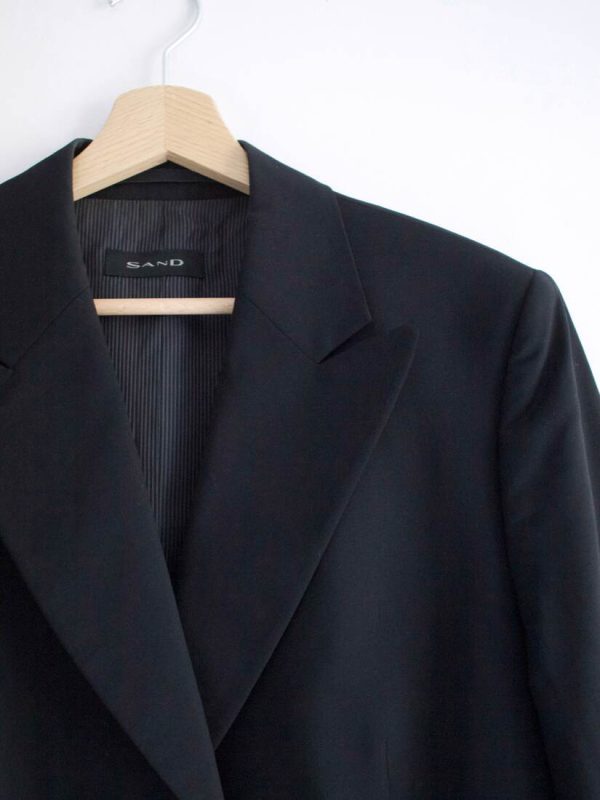 170,00 złCzarna marynarka ekskluzywnej marki Sand Copenhagen, ceny marynarek tej firmy startują od 1300 zł. W 100% wykonana z luksusowej wełny Cerutti. Prosty krój, ramiona lekko usztywnione. Rozmiar z metki 42, polecam na M-L, lub na mniejsze jako oversize. Bez wad, po czyszczeniu.
