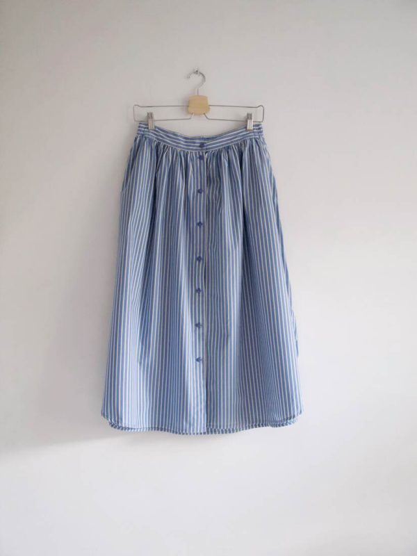 80,00 złSpódnica z popeliny duńskiej marki Moss Copenhagen. Rozpinana po całości, w pasie gumka. Rozmiar z metki S, moim zdanie będzie dobra również na M. Bez wad.