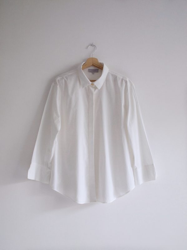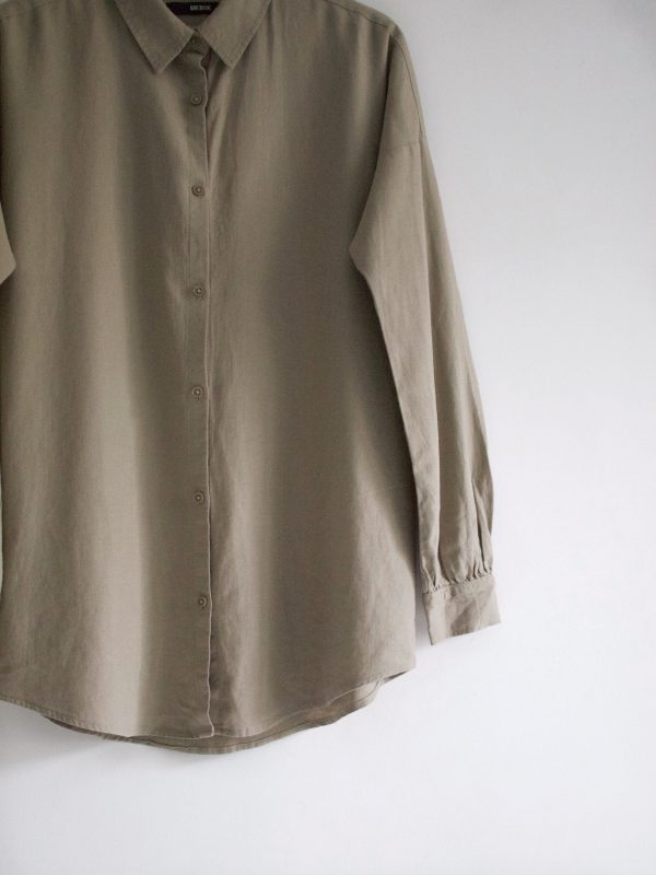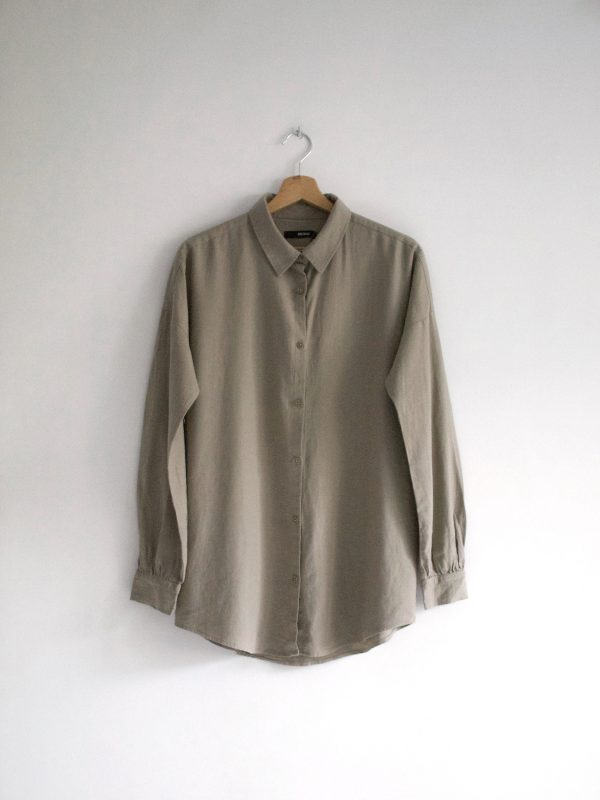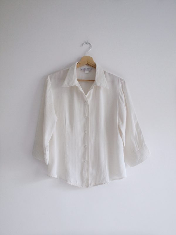 70,00 złKoszula vintage o obszernym kroju. Kołnierz zapinany na guzik w kolorze złota, szerokie rękawy. Rozmiar z metki L, koszula idealna jako oversize. Bez wad.