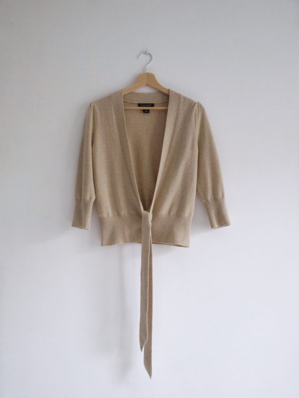 90,00 złSweter z wiązaniem, w 100% wykonany z kaszmiru. Marka Banana Republic. Rozmiar z metki M, będzie pasować również na S. Na jednym rękawie ma malutkie cerowanie, pokazane na ostatnim zdjęciu, poza tym bez wad.