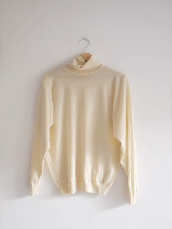 100,00 złWełniany sweter w pastelowym kolorze. 100% wełny z merynosa o najwyższej jakości, wyprodukowany w Szkocji. Brak metki z rozmiarem, sweter nie ma zaznaczonej linii ramion, więc rozmiar jest dość uniwersalny. Idealny stan.