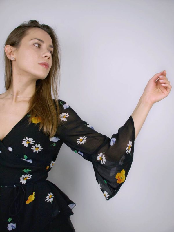 Modelka nosi rozmiar XS-S. Skład: 64% wiskoza, 36% poliester.