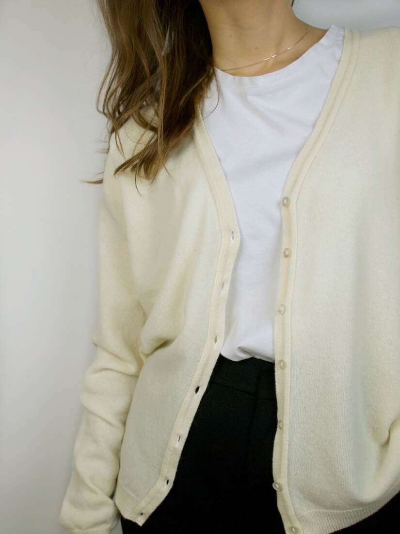 Modelka nosi rozmiar XS-S. Skład: 100% kaszmir.