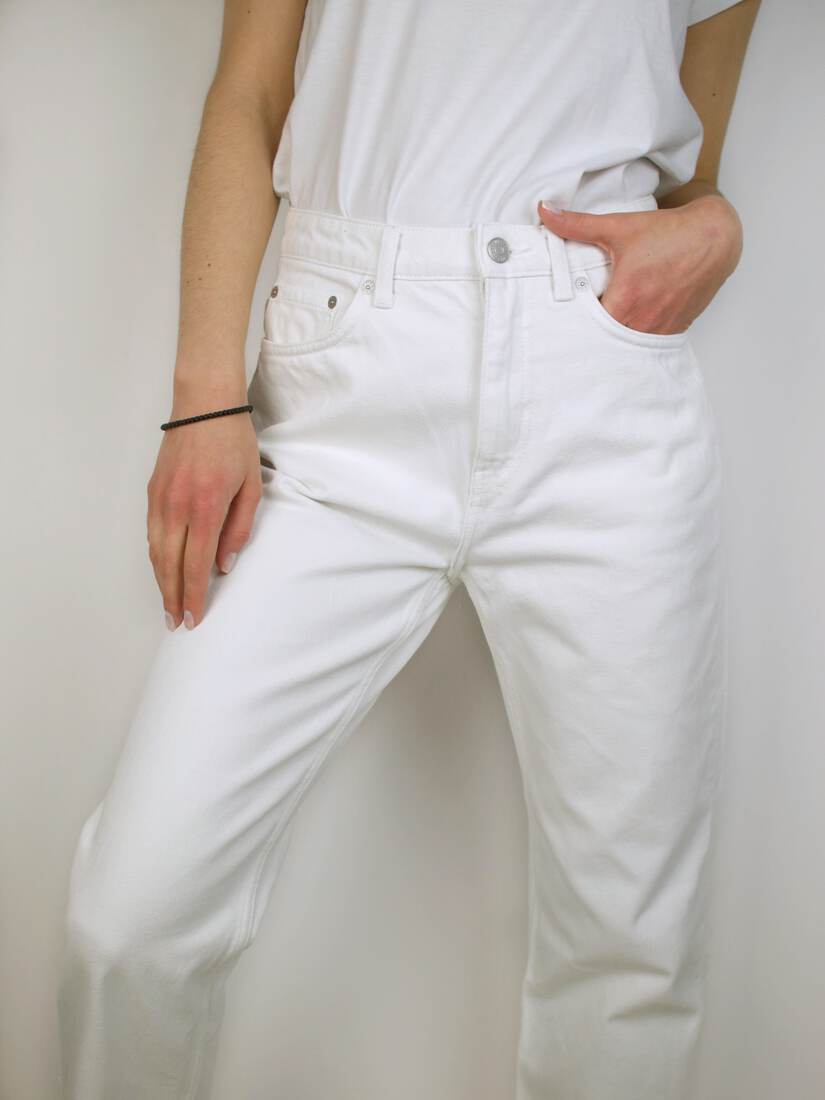 Jeansy skandynawskiej marki Weekday. Wysoki stan, surowo wykończone nogawki. Rozmiar z metki 27×26, polecam na XS-S. Bez wad.