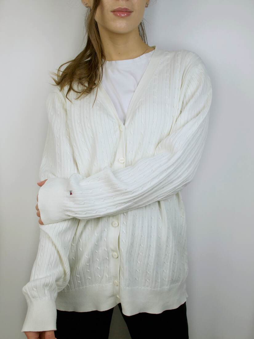 120,00 złKardigan renomowanej marki Tommy Hilfiger. Wykonany z bawełny Pima, uważanej za najlepszą na świecie. Rozmiar z metki L, idealny jako oversize. Bez wad.