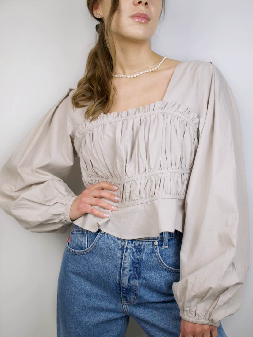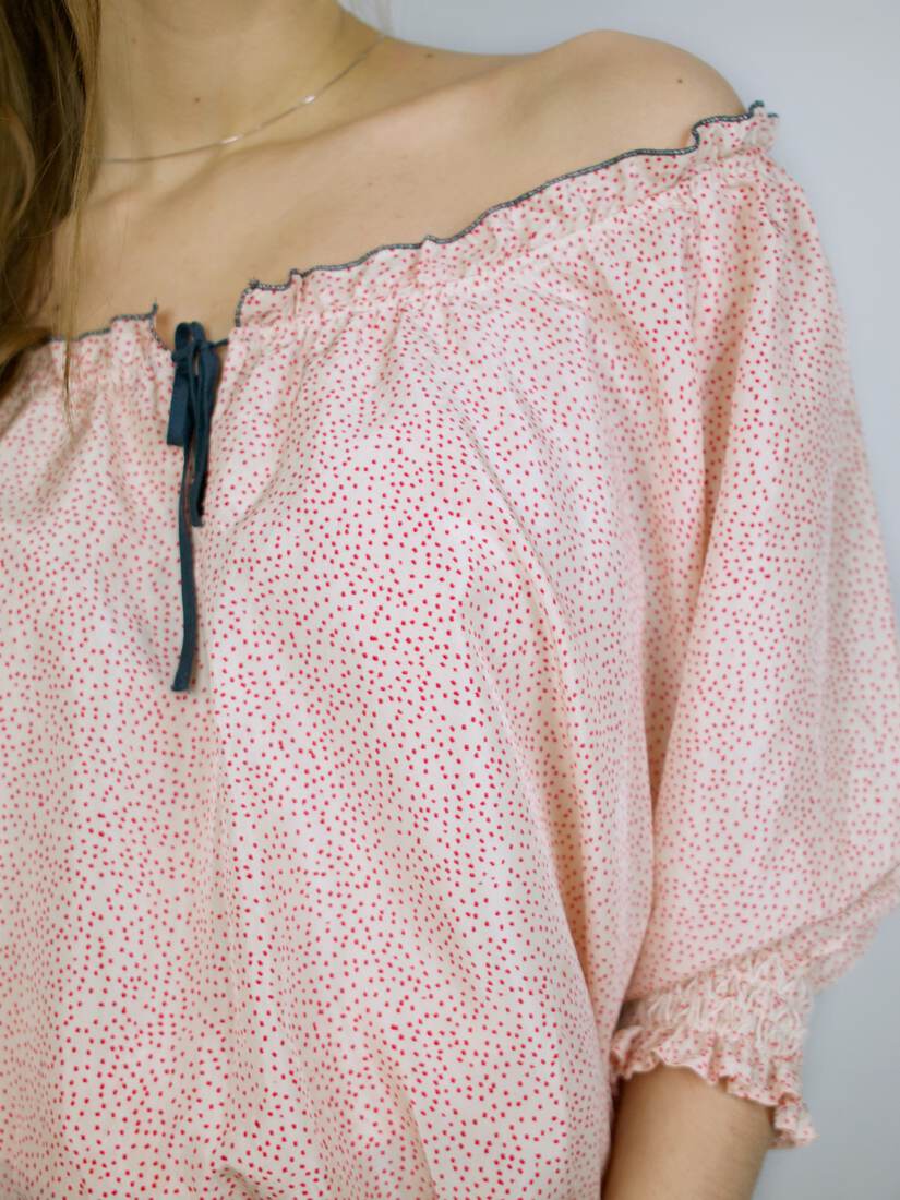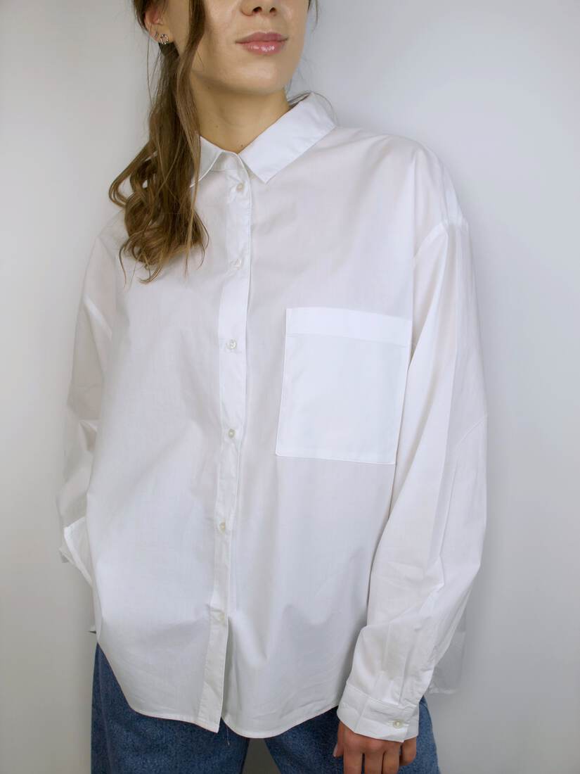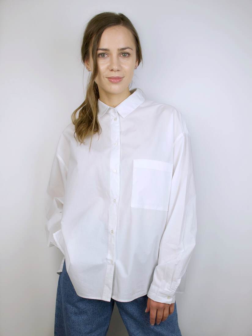 Modelka ma 165 cm wzrostu i nosi rozmiar XS-S. Skład: 100% pima cotton.Szerokość w ramionach 43 cm