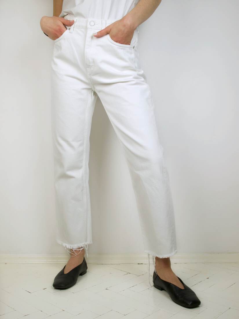 100,00 złJeansy skandynawskiej marki Weekday. Wysoki stan, surowo wykończone nogawki. Rozmiar z metki 27×26, polecam na XS-S. Bez wad.