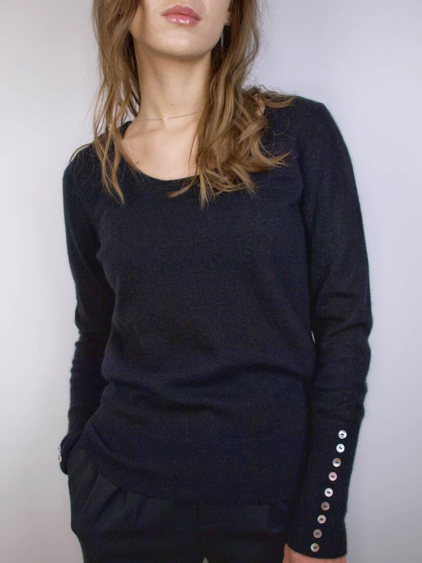 Modelka nosi rozmiar XS-S. Skład: 55% jedwab, 45% kaszmir.