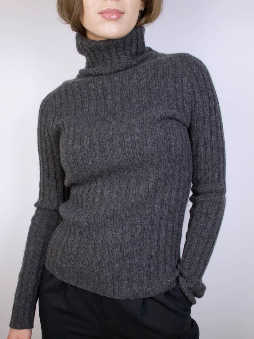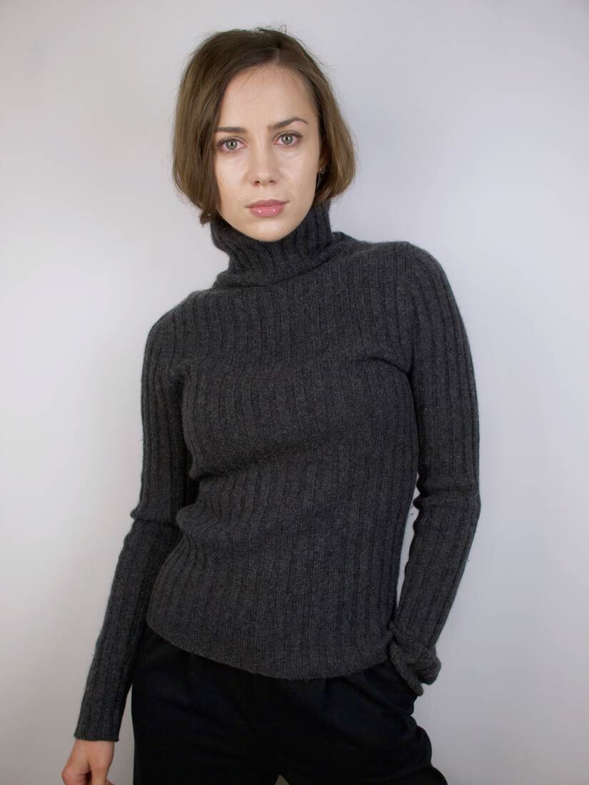 Modelka nosi rozmiar XS-S. Skład: 55% wełna, 30% kaszmir, 15% jedwab.