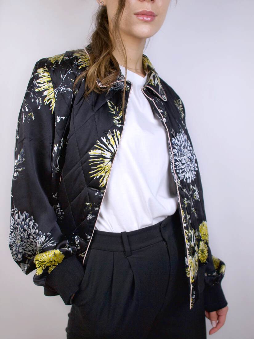 Lekka jedwabna kurtka luksusowej marki Baum und Pferdgarten, cena katalogowa to 399$. Rozmiar z metki 42, pięknie wygląda również na mniejszych rozmiarach. Bardzo dobry stan.