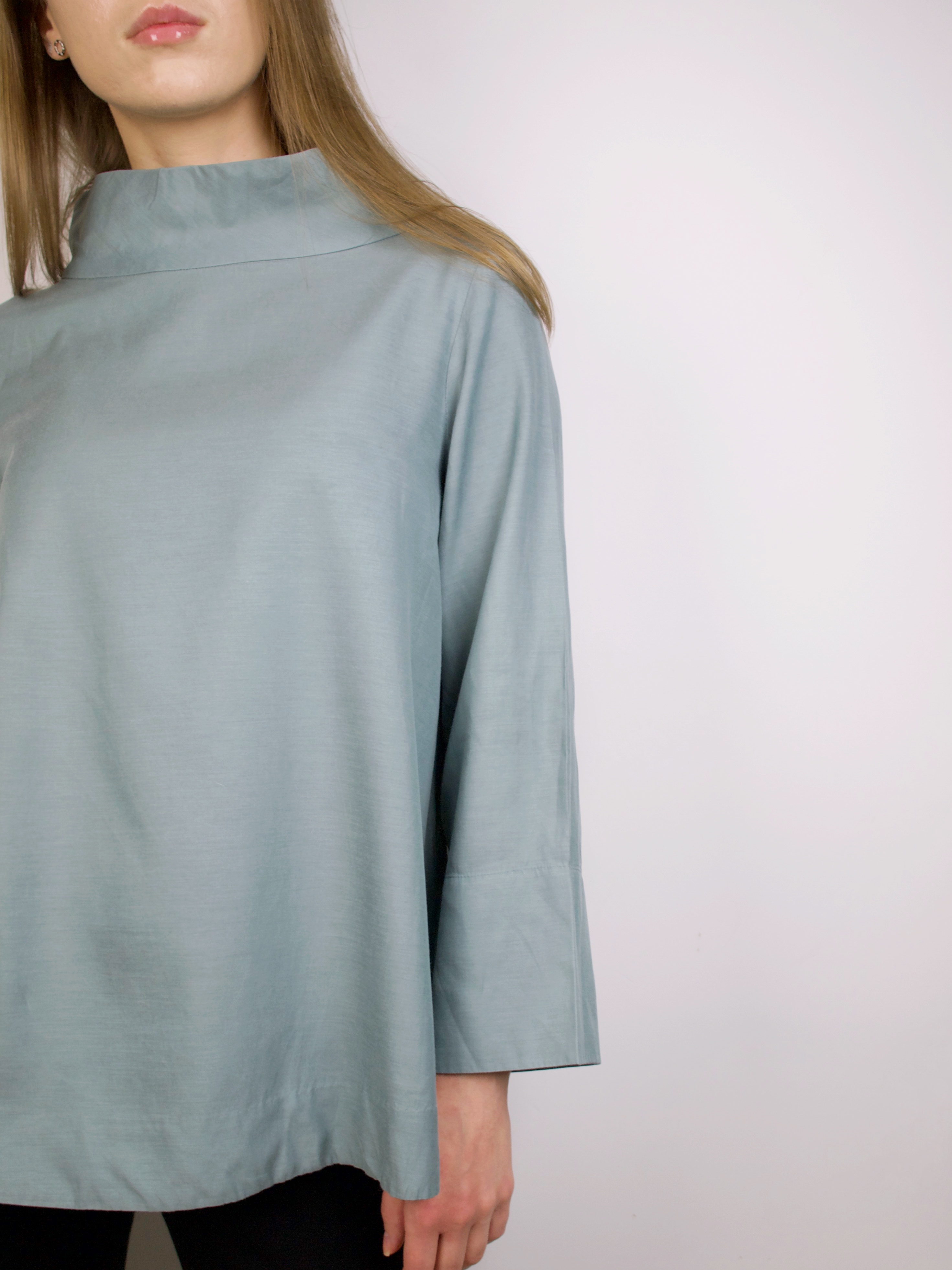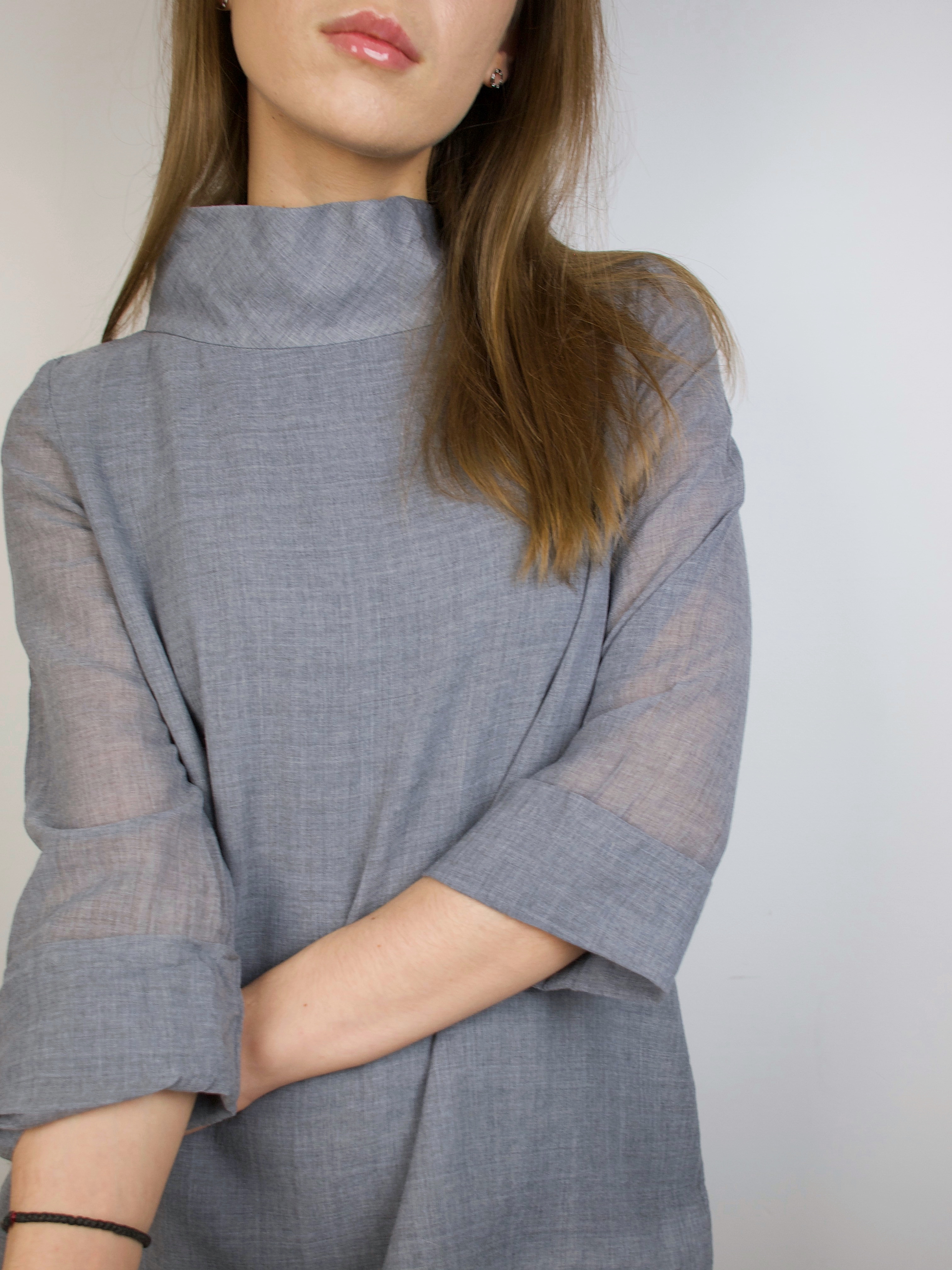 Modelka ma 165 cm wzrostu i nosi rozmiar XS-S. Skład: 60% cupro, 40% bawełna.Szerokość w ramionach 38 cm