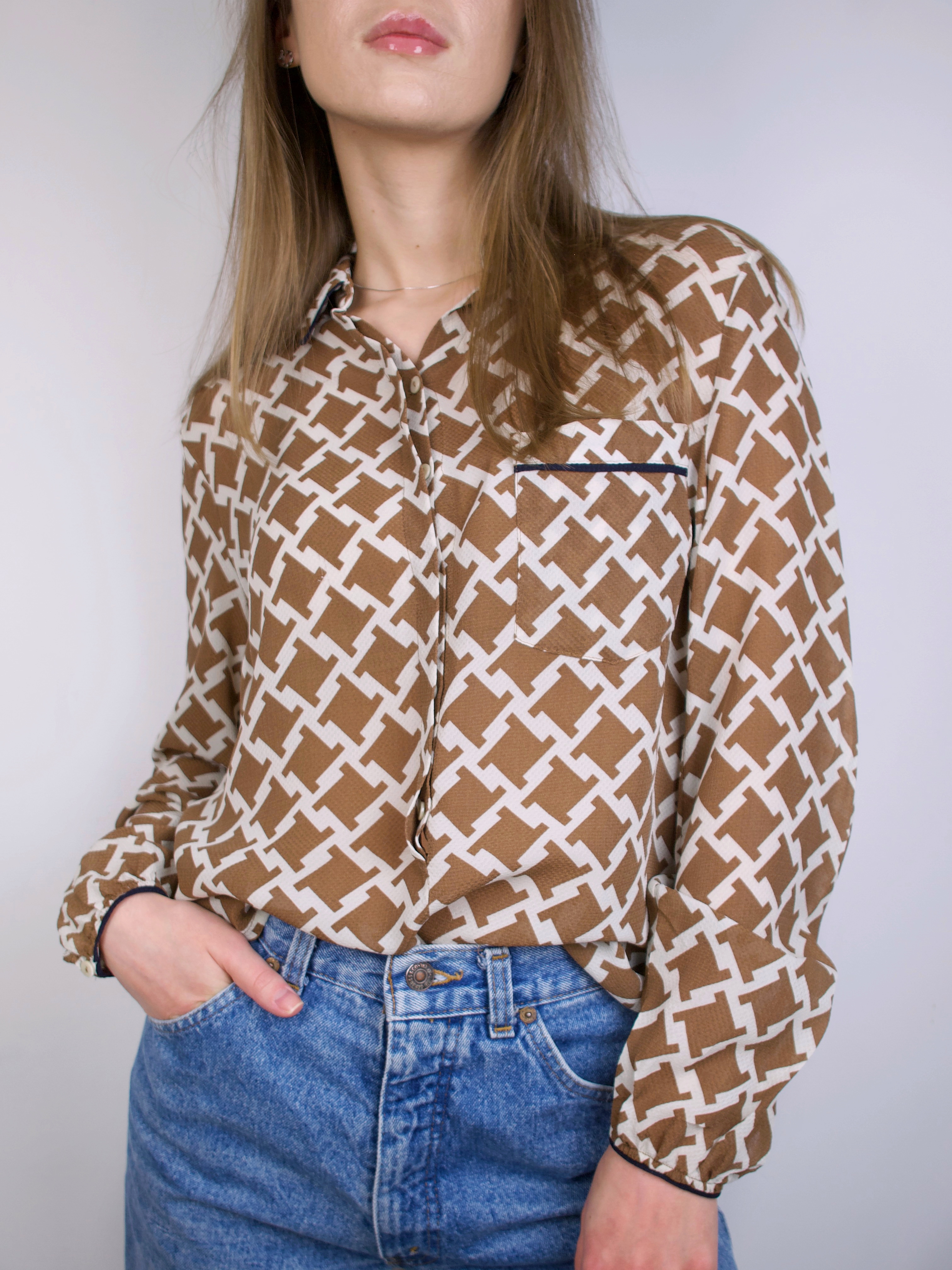120,00 złBluzka luksusowej skandynawskiej marki Baum und Pferdgarten, wykonana w mieszanki jedwabiu (46%) i wiskozy (54%). Rozmiar z metki 40, polecam na M-L. Metka ze składem jest wycięta, pod linkiem ten sam model bluzki ze zdjęciem składu https://www.vestiairecollective.com/women-clothing/tops/baum-und-pferdgarten/camel-viscose-baum-und-pferdgarten-top-10264073.shtml. Bluzka nie jest rozpinana do końca.