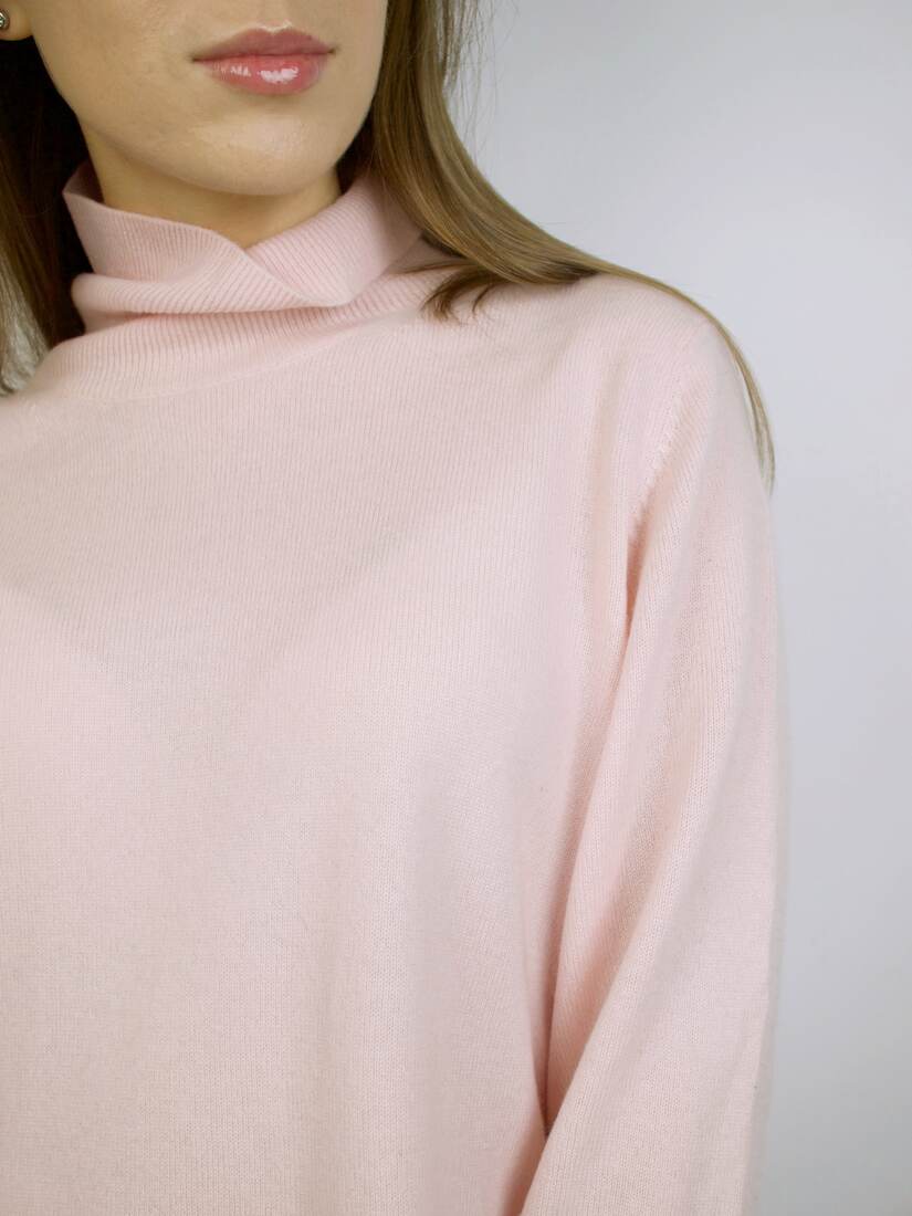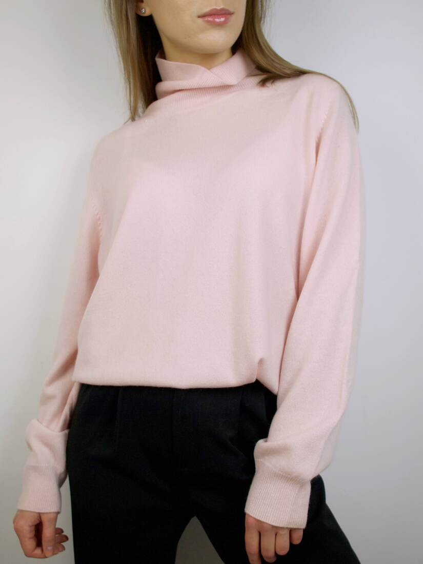 Kaszmirowy golf w kolorze jaśniutkiego, pudrowego różu. Będzie pasować na L-XL, lub na mniejsze jako oversize. Nowy z metką.