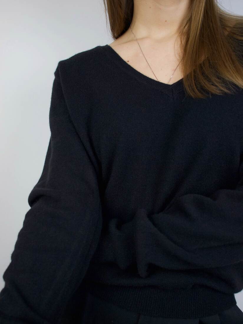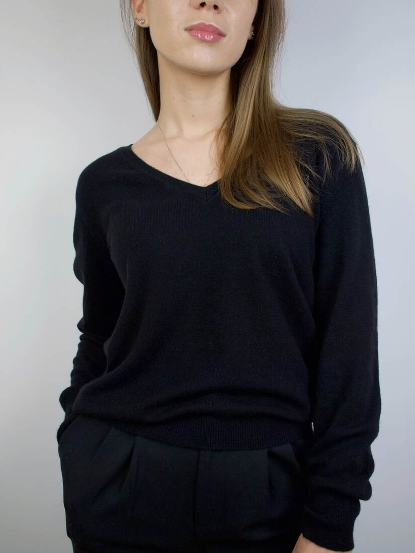 Kaszmirowy sweter basic z dekoltem w kształcie litery V. Wszystkie metki są wycięte, polecam na S. Bez wad.