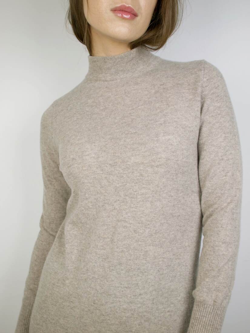 Modelka ma 165 cm wzrostu i nosi rozmiar XS-S. Skład: 100% kaszmir.