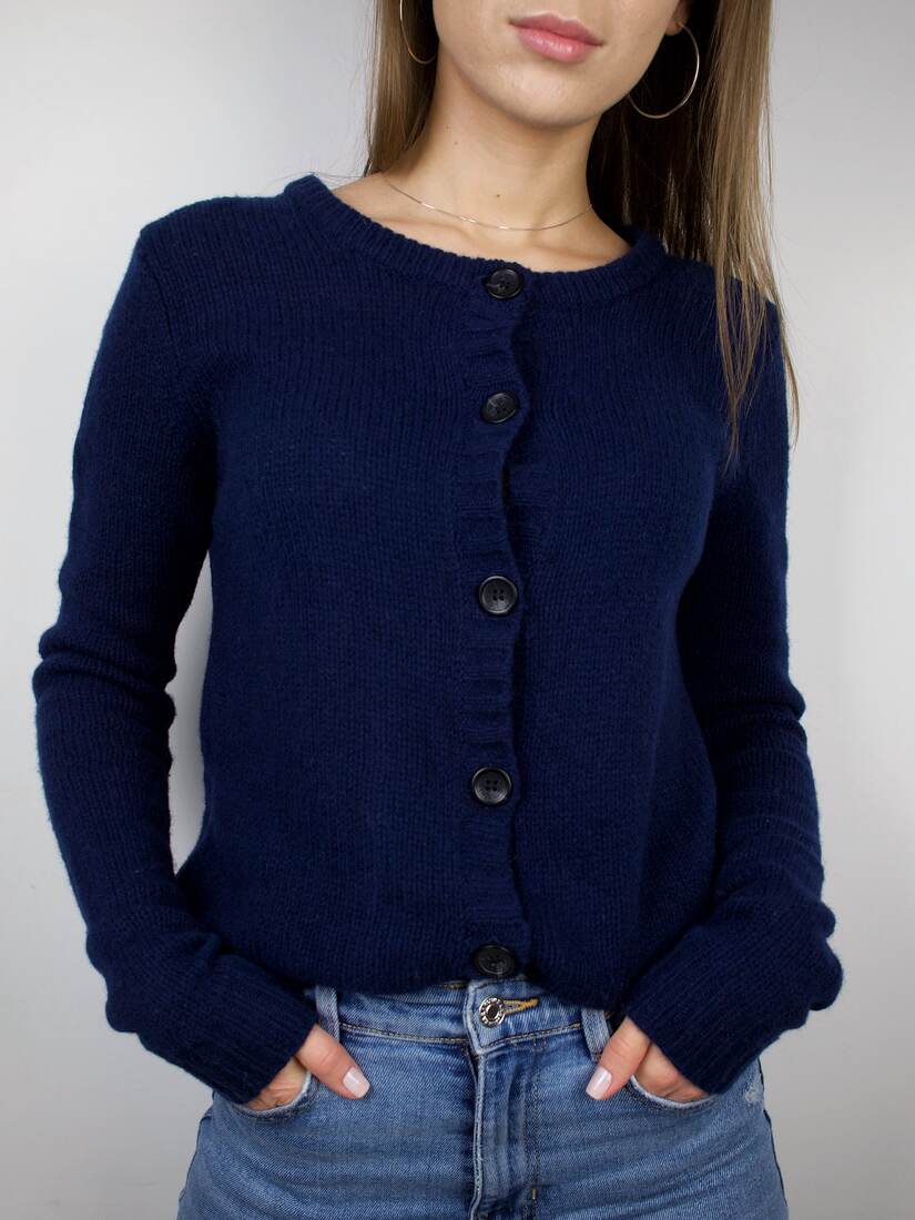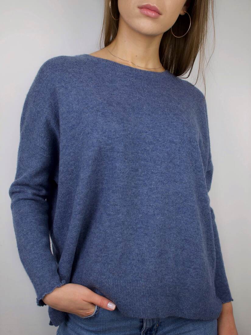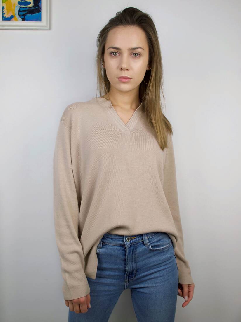 Modelka ma 165 cm wzrostu i nosi rozmiar XS-S. Skład: 90% wełna, 10% kaszmir.Szerokość w klatce 63 cm