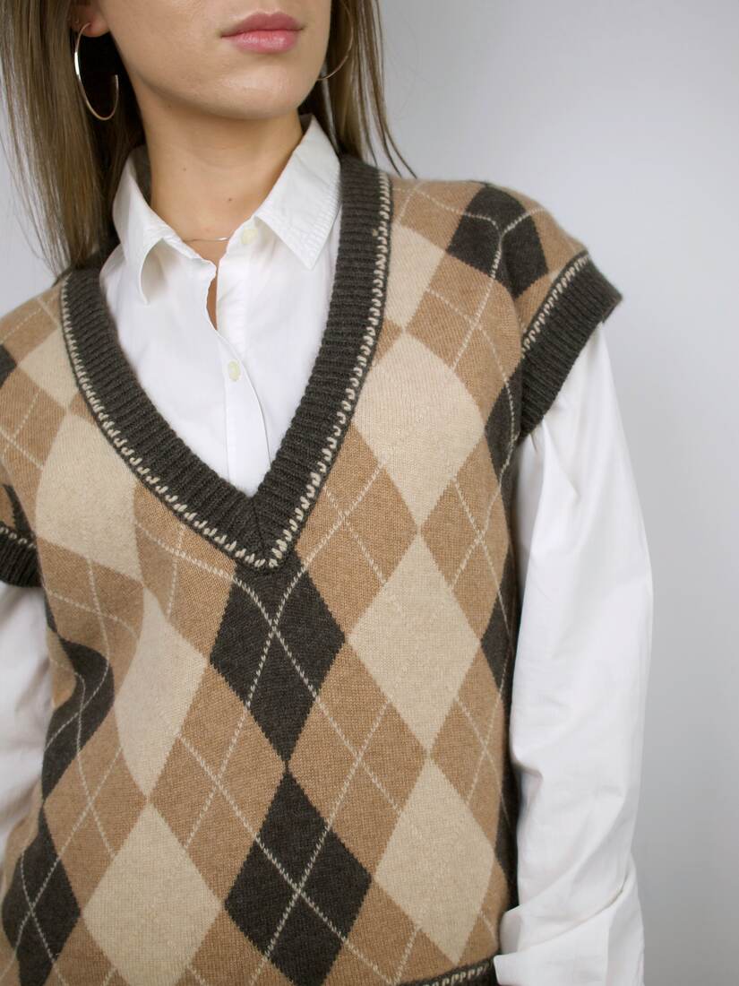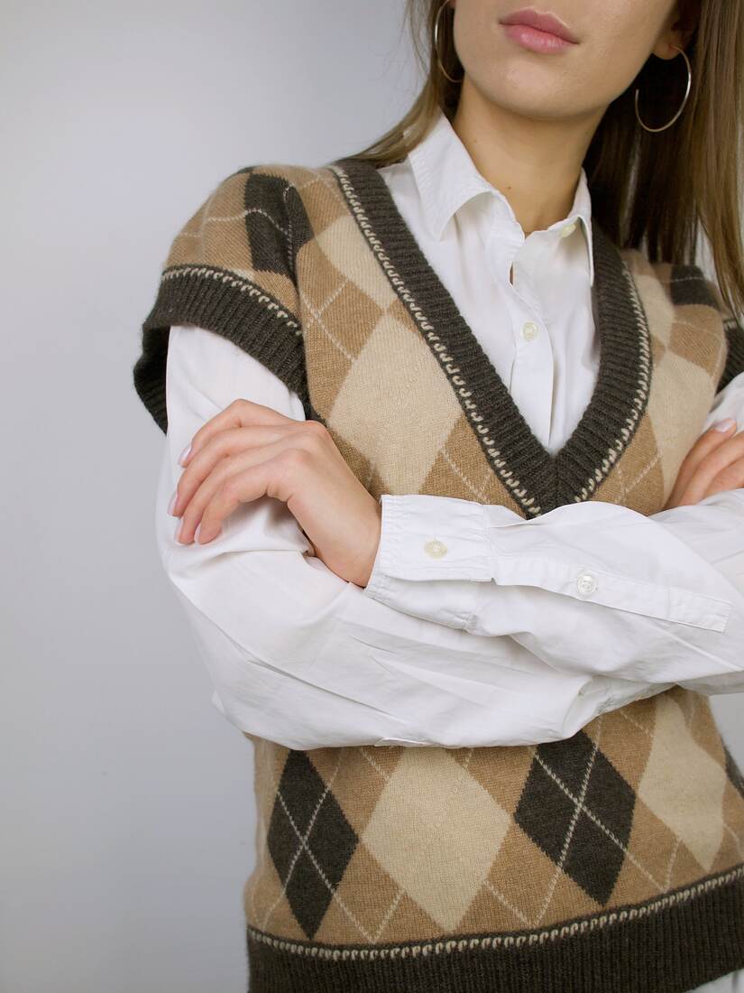 Modelka ma 165 cm wzrostu i nosi rozmiar XS-S. Skład: 50% wełna, 50% akrylSzerokość w klatce 51,5 cm