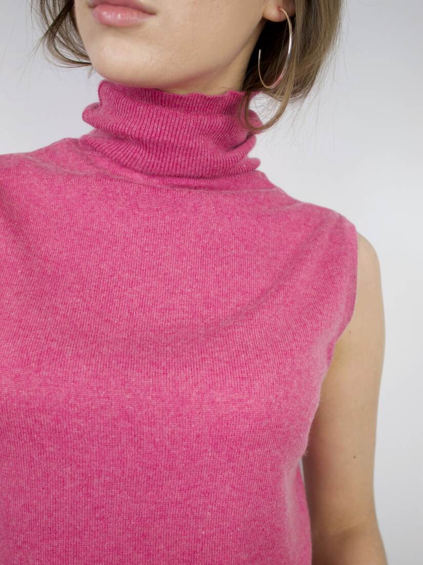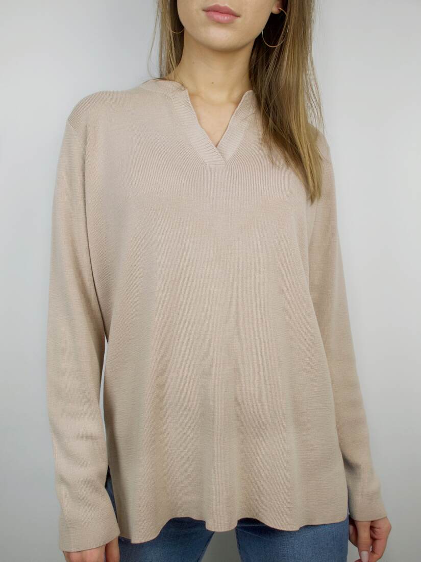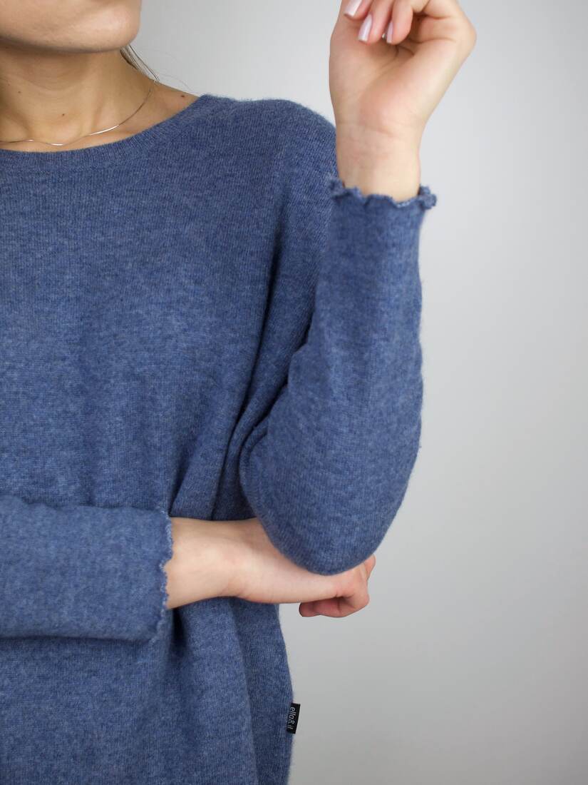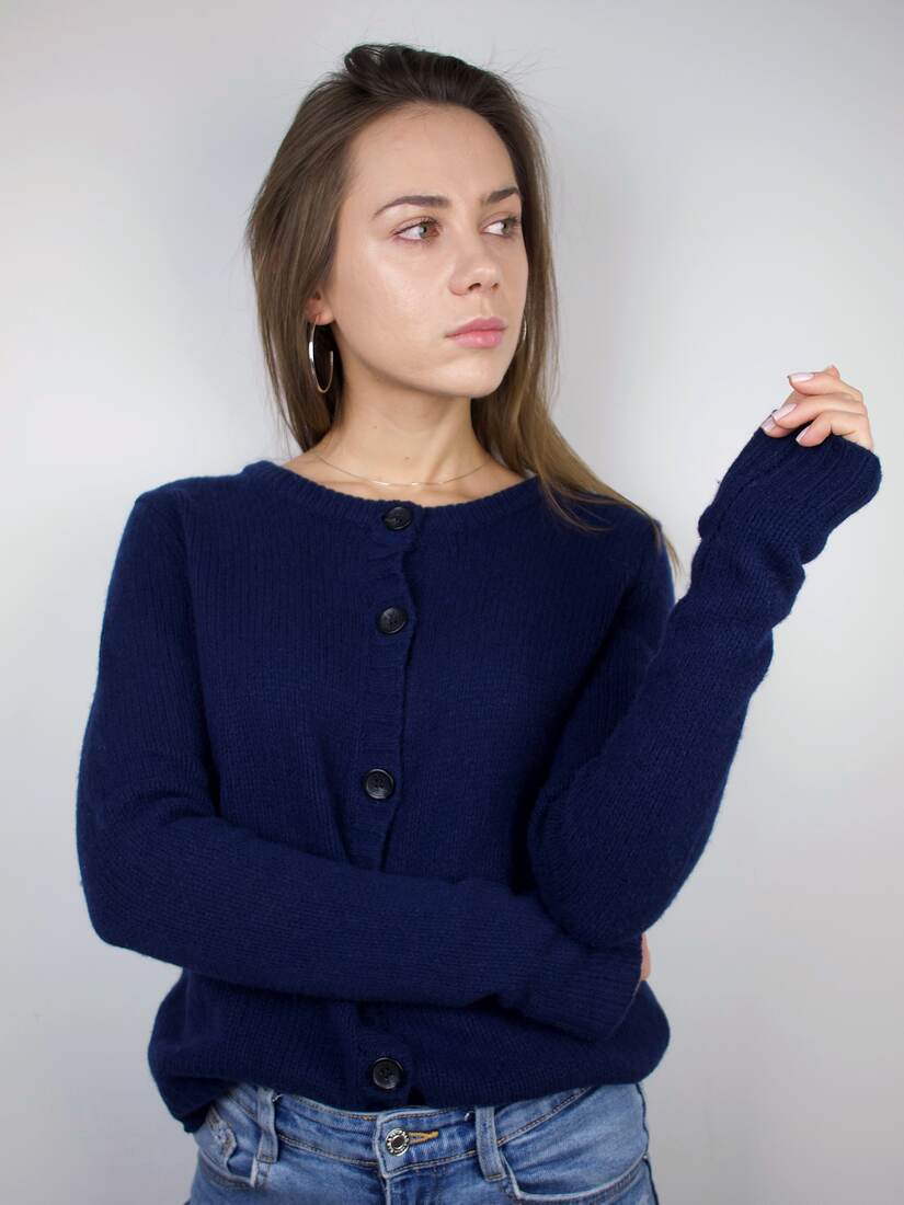Modelka ma 165 cm wzrostu i nosi rozmiar XS-S. Skład: 87% wełna, 13% kaszmir.Szerokość w ramionach 38 cm