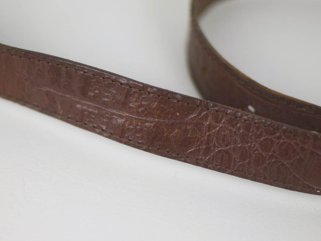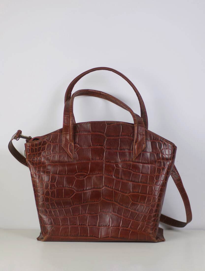 140,00 złPojemna torebka vintage, wykonana ze sztywnej skóry tłoczonej na wzór skóry krokodyla. W środku dwie komory oraz kieszonka na telefon. Posiada odpinany pasek na ramie. Bardzo dobry stan, delikatne wytarcia skóry nie widoczne w noszeniu. Wymiary: wysokość 30 cm, szerokość 37 cm, głębokość 16 cm, wysokość z rączką 42 cm.
