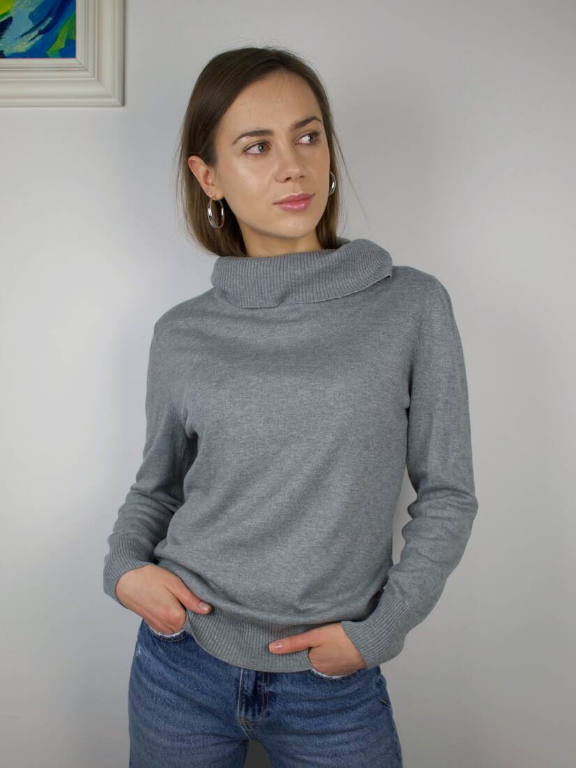 110,00 złCienki sweter z golfem, wykonany z mieszanki jedwabiu, bawełny i kaszmiru. Rozmiar z metki S, również będzie pasować na M. Bardzo dobry stan.