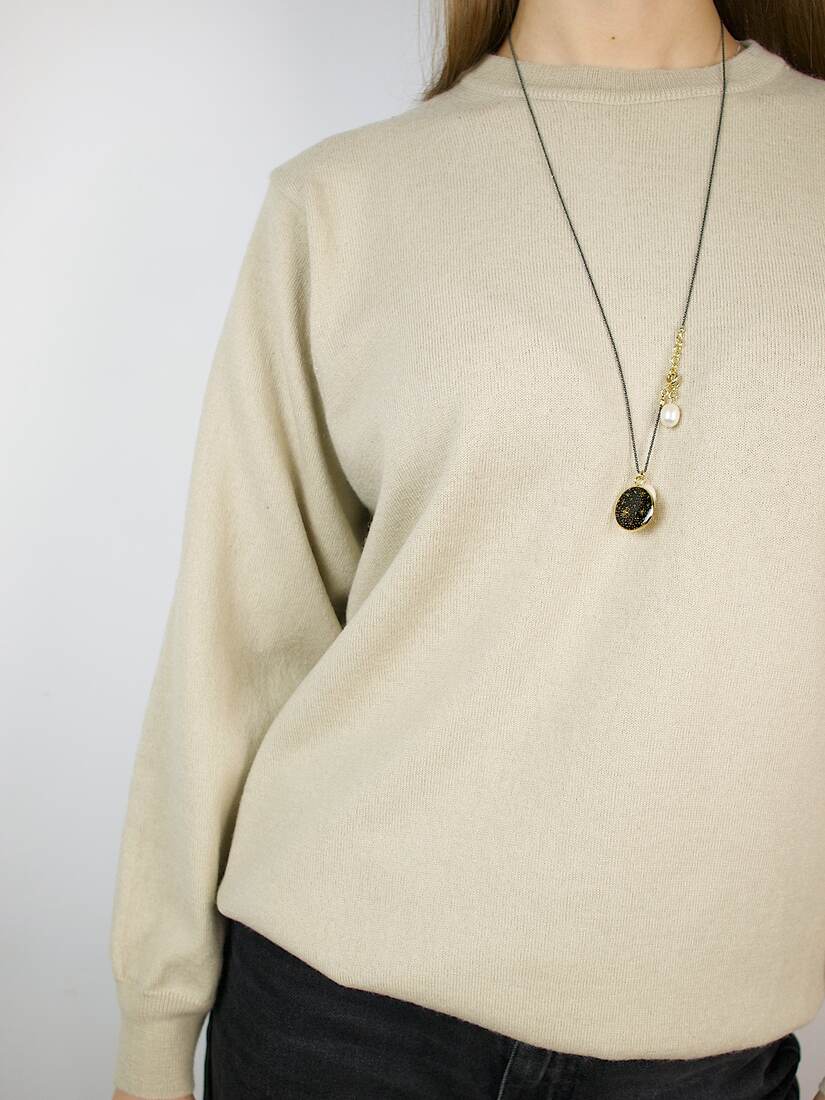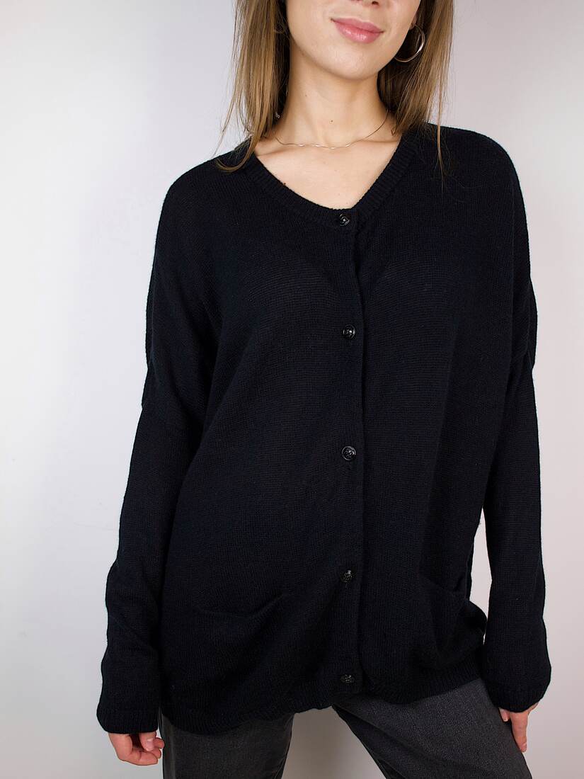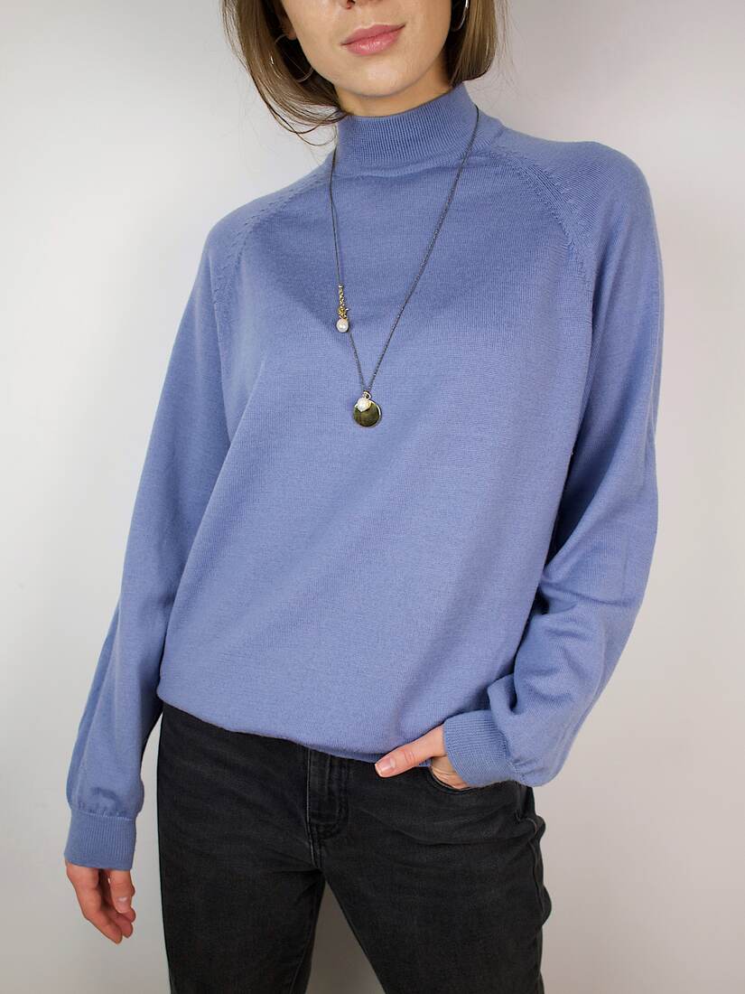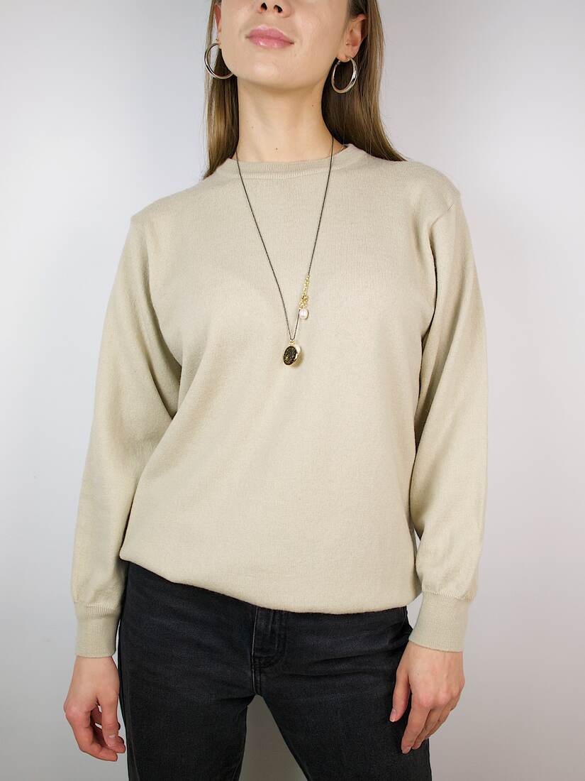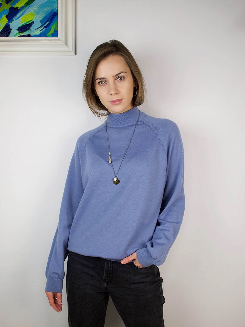 150,00 złUnikatowy sweter vintage wykonany z angory. Bardzo puszysty i miękki. Sweter ma obszerny krój, nieco poszerzane rękawy, z tyłu zapięcie na jeden guzik. Uniwersalny rozmiar, bez wad. Skład: 80% angora, 10% wełna, 10% nylon.