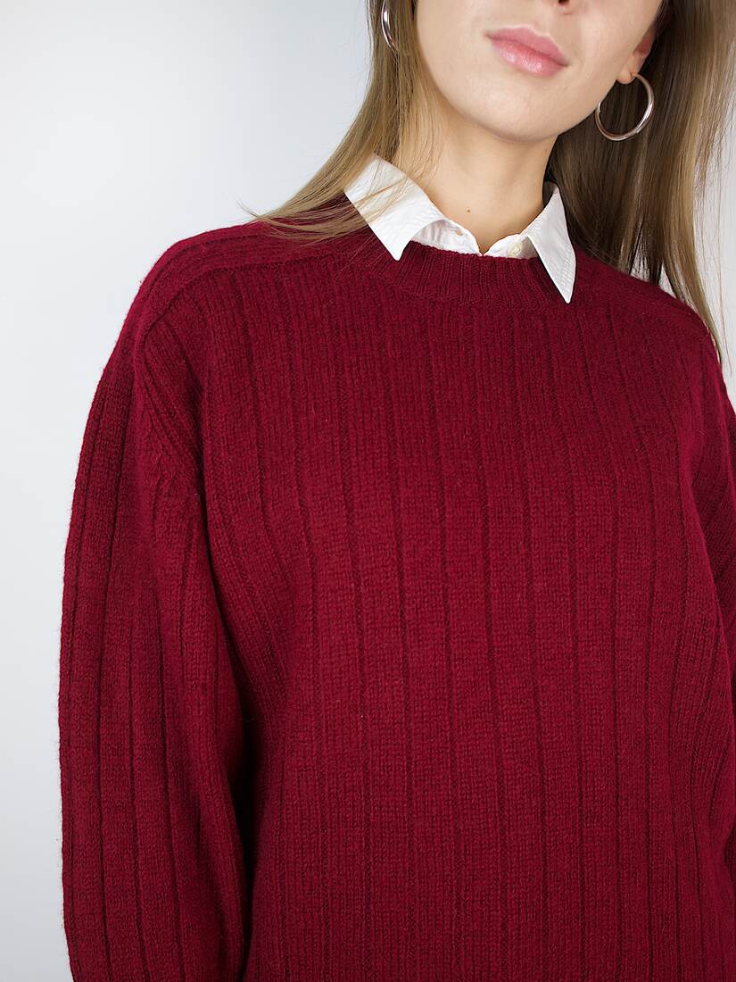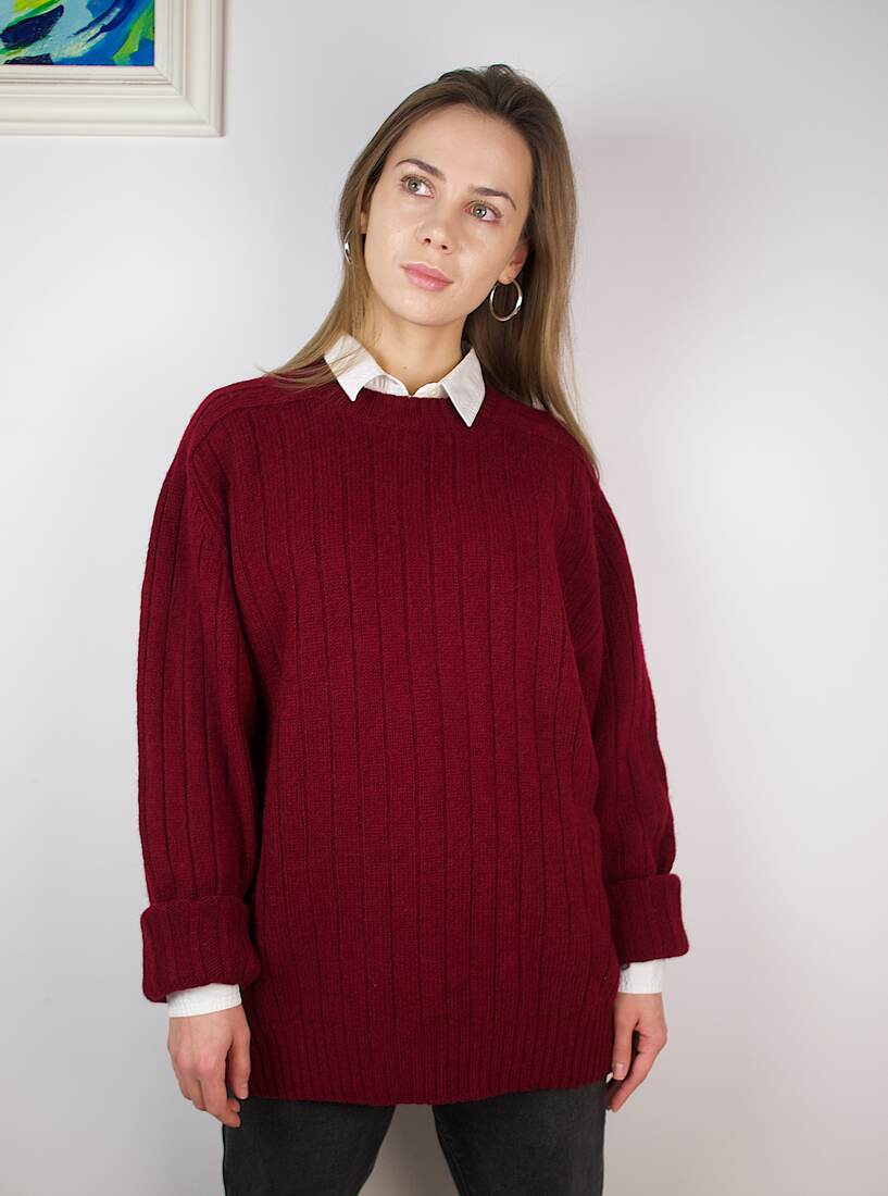 130,00 złObszerny wełniany sweter. Bardzo ciepły, w 100% wykonany z grubej szetlandzkiej wełny. Sweter może gryźć, więc polecam do noszenia z koszulą lub t-shirtem. Rozmiar z metki XL, na mniejszy idealny jako oversize. Bez wad.